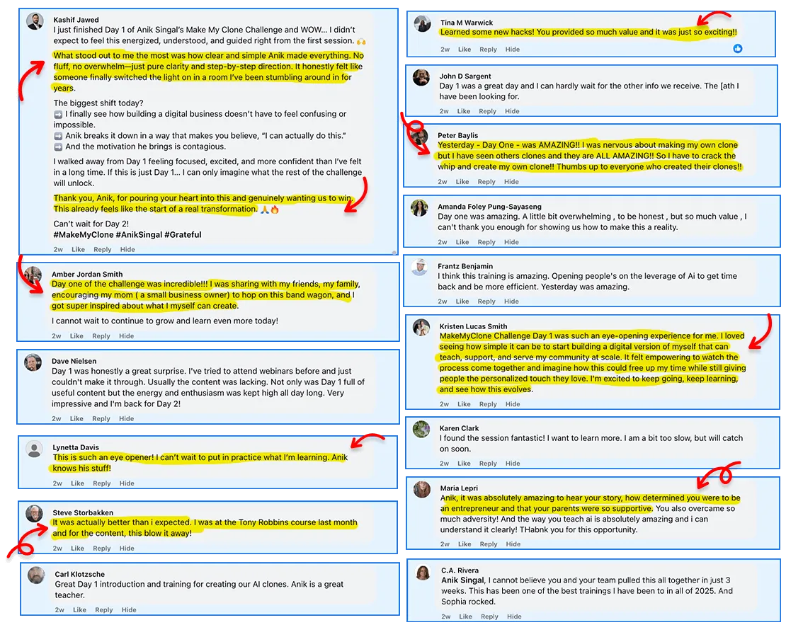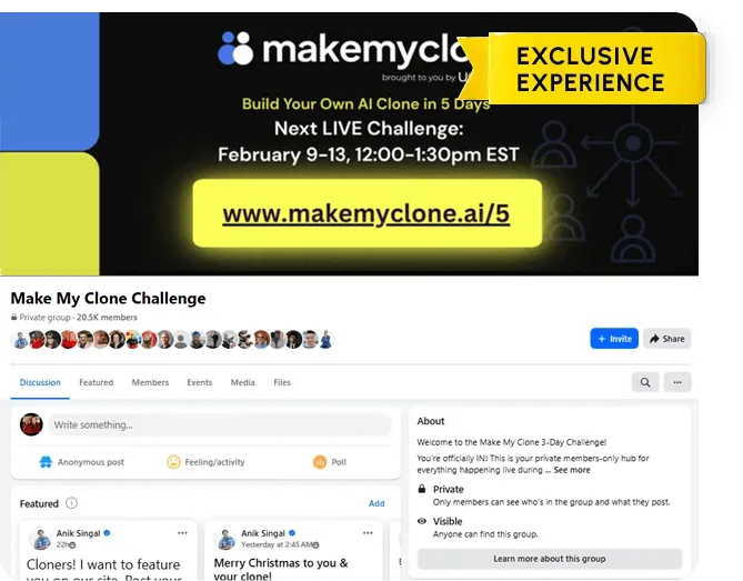 When you register for MakeMyClone, you’ll get free access to our private Facebook community with over 9,000 members.