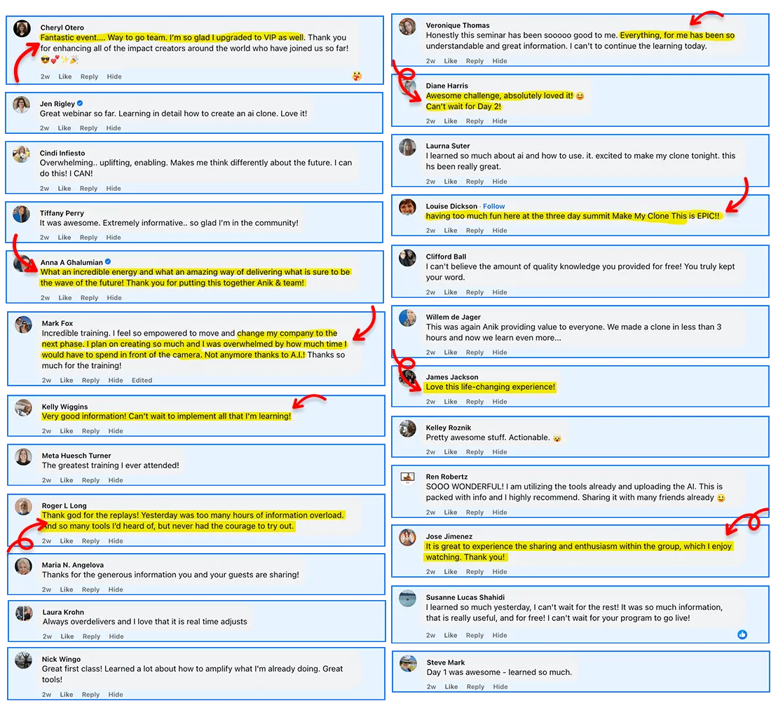 Once you register, you’ll receive an invite to our private Facebook group with over 9,000 members. This is where participants share their clones, ask questions, get feedback, and stay connected with the team and community.