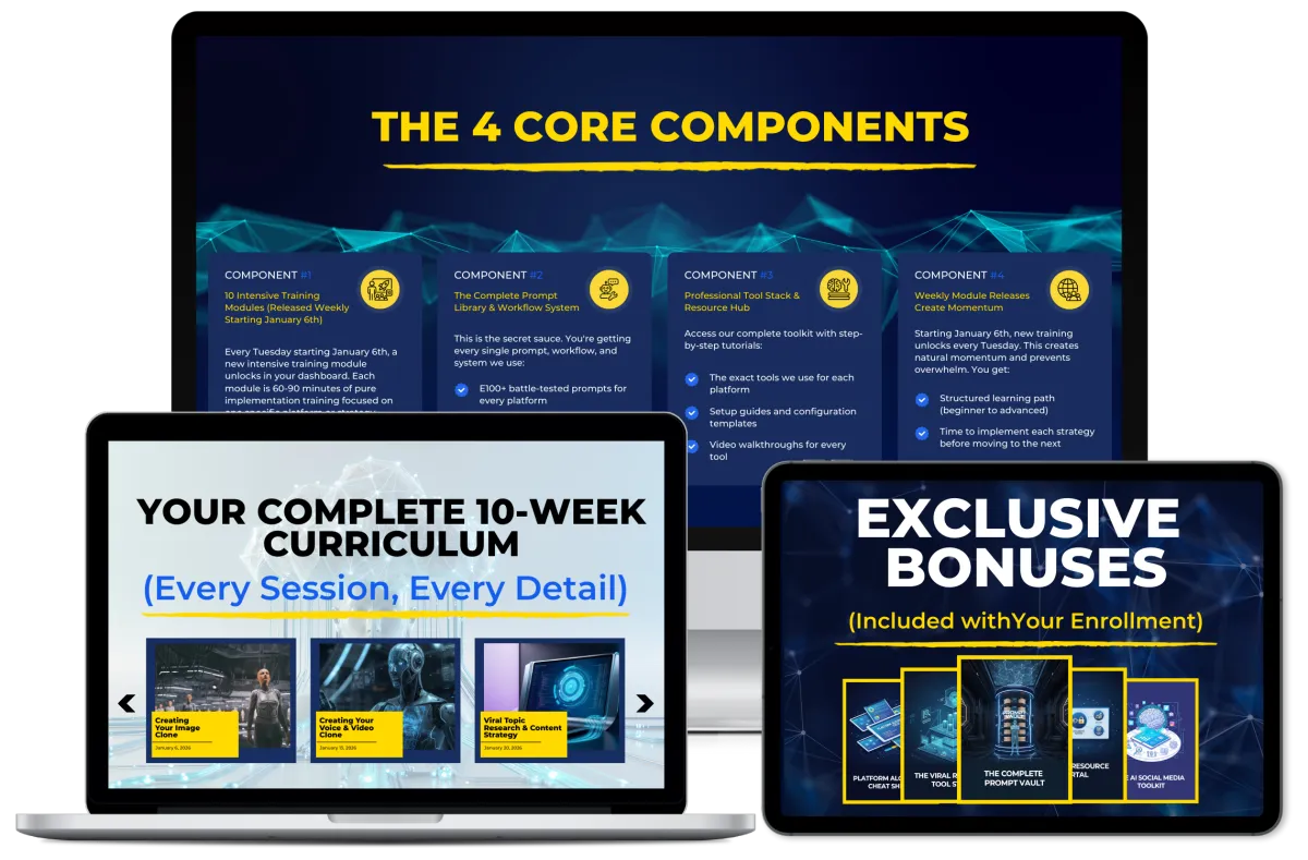 In this masterclass, you’ll learn the exact 4-Clone System responsible for over 100 million impressions, 10,000+ ad clicks, and even a $3,000 course that nobody knows was created by AI. And we’re not just teaching it - we’re building all four clones with you live.