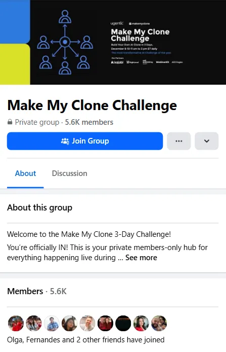 The Make My Clone Challenge Facebook Group is where the magic happens.